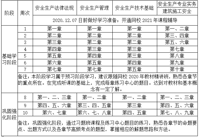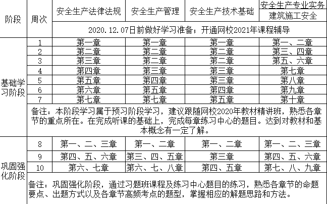 2、已報(bào)網(wǎng)校2021年安全工程師輔導(dǎo)高端班的同學(xué),將由班主任老師根據(jù)您的信息反饋及學(xué)習(xí)時(shí)間制定更詳盡的計(jì)劃表,如與本表不一致,請以班主任老師制定的學(xué)習(xí)計(jì)劃為準(zhǔn)。