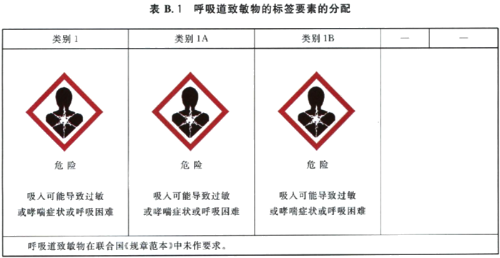如果使用了呼吸致敏物的健康危害圖形符號,則不應(yīng)出現(xiàn)感嘆號來表示皮膚致敏物或者皮膚/眼睛刺激。