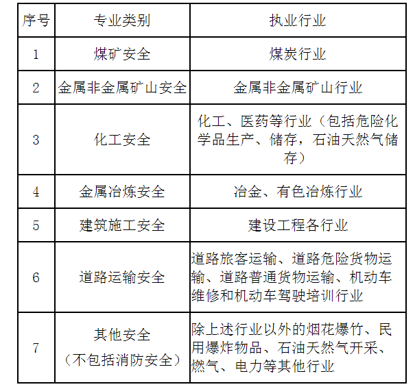 各專業(yè)類別注冊(cè)安全工程師執(zhí)業(yè)行業(yè)界定表