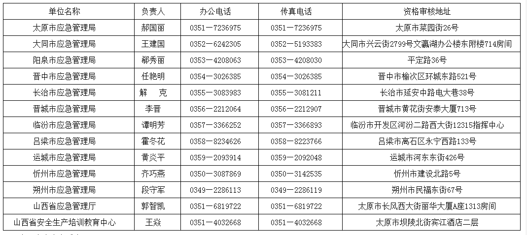 山西省應(yīng)急管理部門聯(lián)系方式 (報(bào)考條件咨詢、現(xiàn)場(chǎng)資格審核)