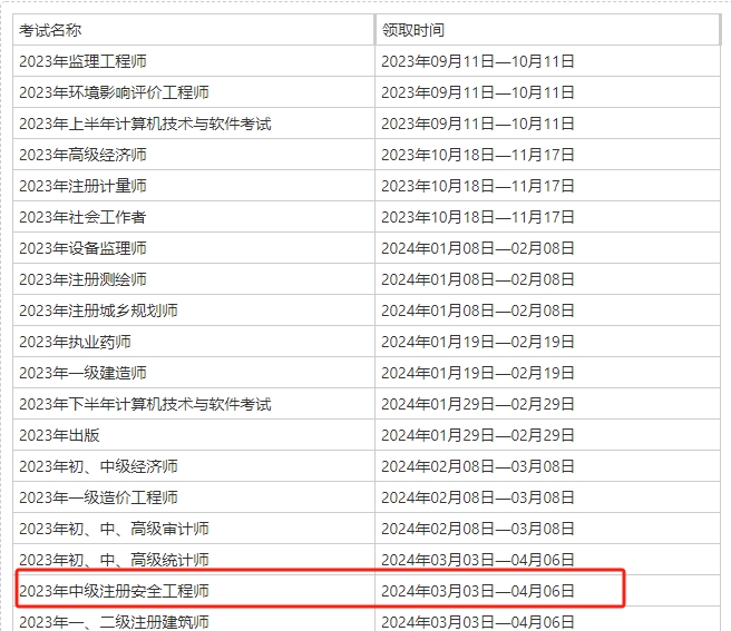 海南2023年中級(jí)注冊(cè)安全工程師職業(yè)資格考試合格證書領(lǐng)取通知