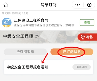 3.訂閱成功中,可在“已訂閱消息”中查看,在考試報名開始時,會進行微信通知。