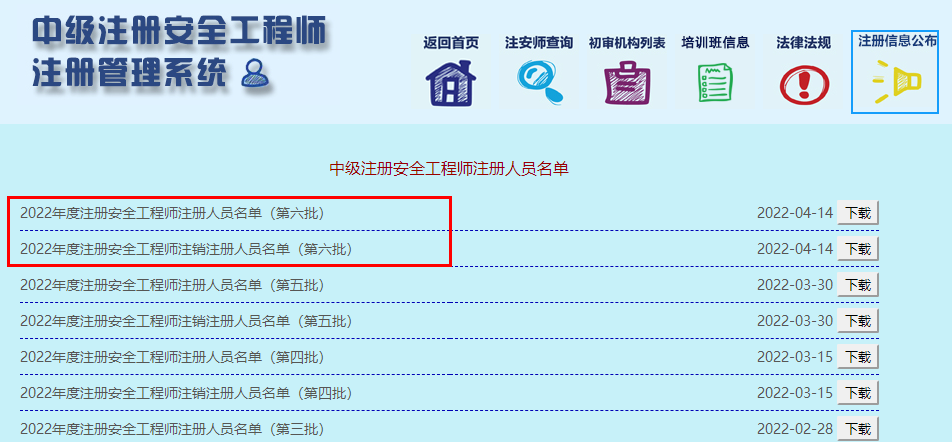 2022年度注冊安全工程師注冊及注銷注冊人員名單(第六批)