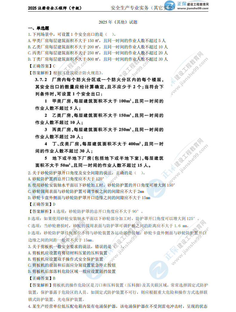 2025年中級安全工程師《其他安全》考試結(jié)束,考生們最關(guān)心的肯定是這一科目試題及答案。建設工程教育網(wǎng)考后會依據(jù)考生反饋,及時匯總中級安全工程師《其他安全》的試題及答案,期望能給各位考生提供幫助!