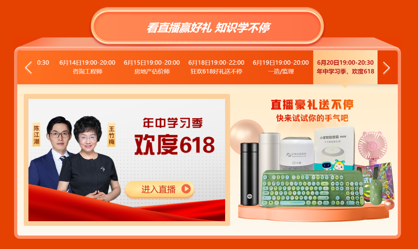 爽11期間網(wǎng)校為大家準(zhǔn)備了豐富的直播活動(dòng),不僅為大家備考充電,更有無限驚喜好禮哦,各位感興趣的小伙伴鎖定直播時(shí)間,房地產(chǎn)估價(jià)師《土估實(shí)務(wù)》最后一課,千萬不要錯(cuò)過~