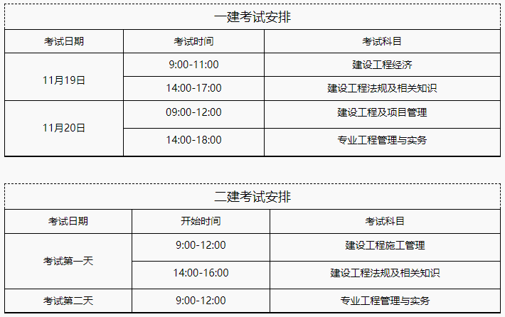 從考試安排來看:一級(jí)建造師執(zhí)業(yè)資格考試以筆試的方式進(jìn)行,為閉卷考試。實(shí)行統(tǒng)一大綱、統(tǒng)一命題、統(tǒng)一組織的考試制度,由人事部、建設(shè)部共同組織實(shí)施,每年舉行一次考試;二建由于各省自主命題,考試時(shí)間需參照各省的人事考試中心網(wǎng)站。在科目上,二建比一建少考一項(xiàng)科目。具體考試時(shí)間和考試科目如下。