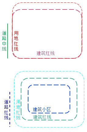 建筑紅線可能與道路紅線重合,一般在新城市中常使建筑紅線退道路紅線之后,而建筑小區(qū)距離建筑紅線,再退2m,且退后范圍內(nèi),不得使用。