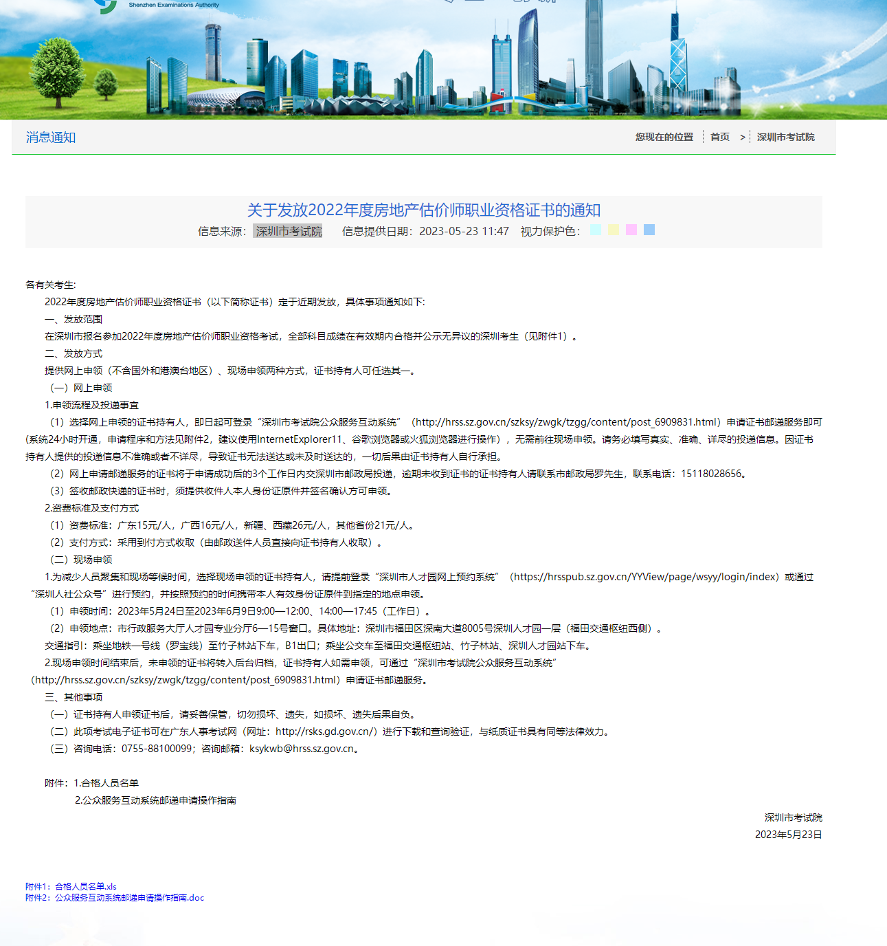 關(guān)于發(fā)放2022年度深圳房地產(chǎn)估價(jià)師職業(yè)資格證書的通知