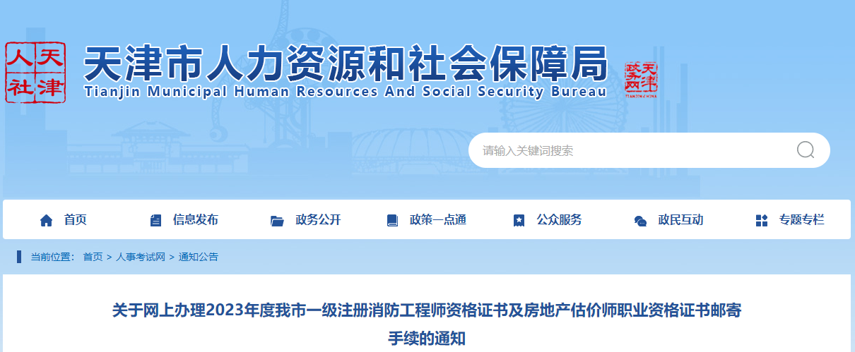 關(guān)于網(wǎng)上辦理2023年天津房地產(chǎn)估價(jià)師資格證書郵寄手續(xù)的通知