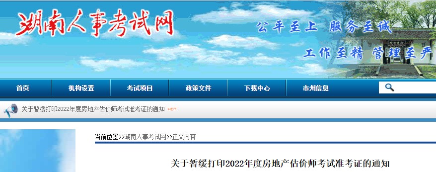 【暫緩】湖南?關(guān)于暫緩打印2022年度房地產(chǎn)估價(jià)師考試準(zhǔn)考證的通知
