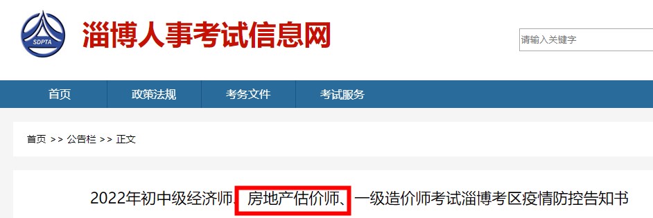 2022年房地產(chǎn)估價師考試淄博考區(qū)疫情防控告知書