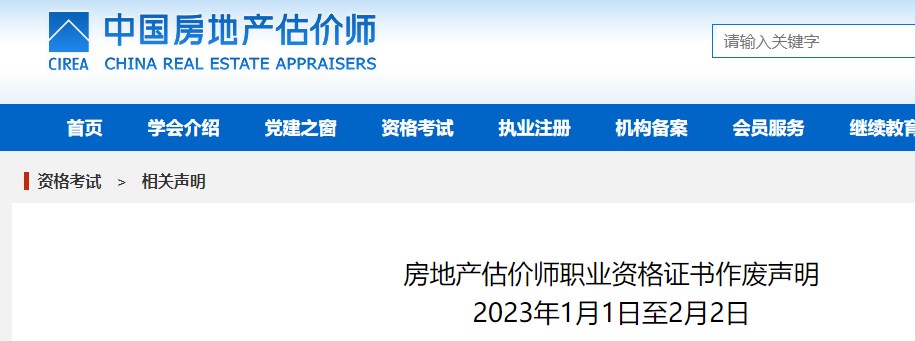 中房學(xué)關(guān)于房地產(chǎn)估價(jià)師資格證書作廢聲明(1月1日至2月28日)