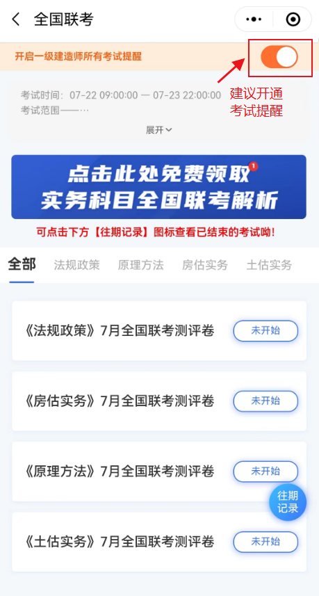 建議開(kāi)通考試提醒,避免錯(cuò)過(guò)房地產(chǎn)估價(jià)師考試。