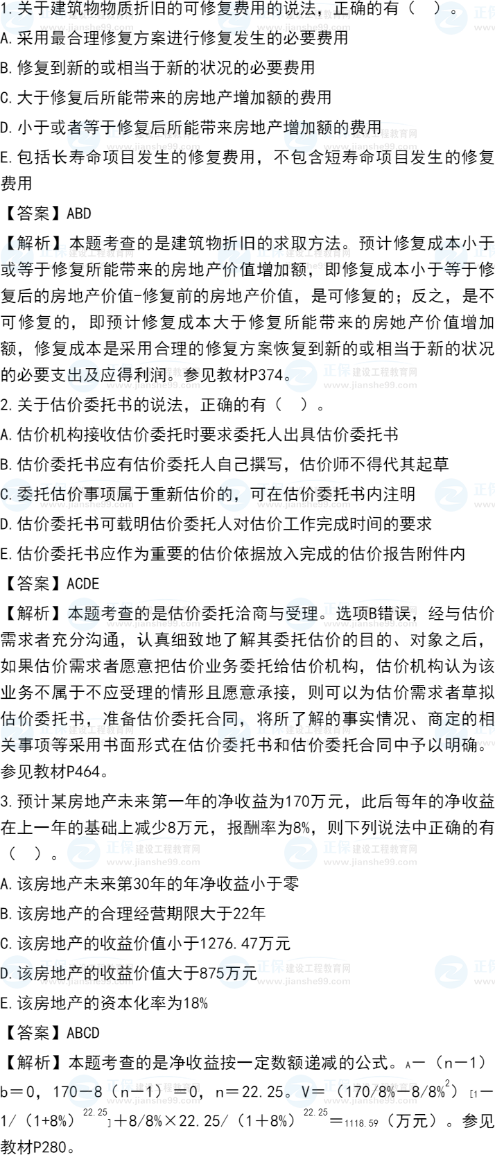 2021年房地產(chǎn)估價(jià)師原理方法試題及答案解析多選題1-10題