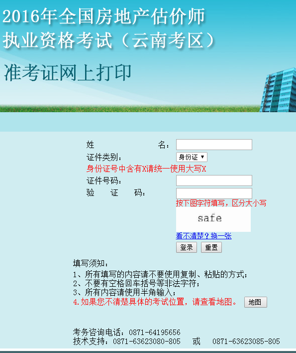 云南公布2016年房地產(chǎn)估價師準考證打印入口