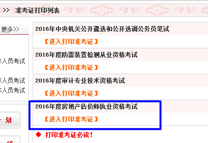 四川2016年房估產(chǎn)估價(jià)師準(zhǔn)考證打印入口:
