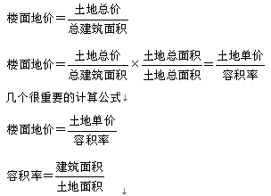 土地總價=土地單價×土地面積=樓面地價×建筑面積