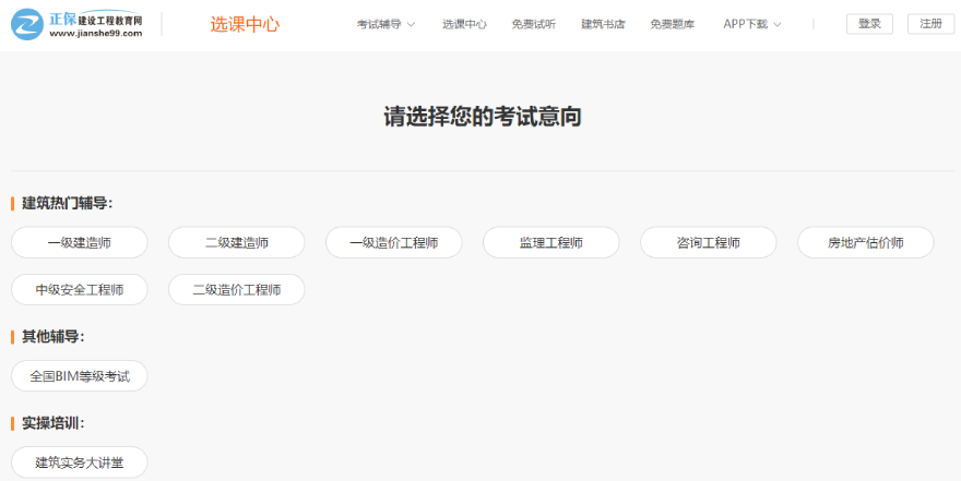 第一步:進(jìn)入建設(shè)工程教育網(wǎng)校選課中心,選擇輔導(dǎo)類(lèi)別