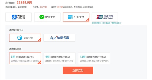 網(wǎng)校推薦使用花唄分期平臺(tái)進(jìn)行分期付款,您可以在我的網(wǎng)校我的家“分期賬戶(hù)管理”中查看分期相關(guān)信息。民生分期支持無(wú)卡申請(qǐng),以上均為正常訂單手續(xù)費(fèi)用。花唄分期:詳情咨詢(xún)400-6294-121。