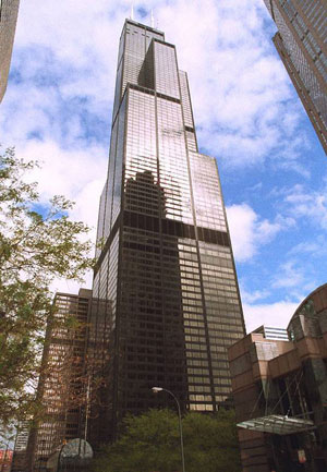 西爾斯大廈是位于美國伊利諾州芝加哥的一幢摩天大樓,樓高442米,共地上108層,由建筑師密斯·凡德勒所設(shè)計(jì)。