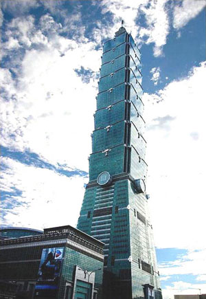 被稱為“臺北新地標(biāo)”的101大樓于 1998年1月動工,主體工程于2003年10月完工。有世界最大且最重的“風(fēng)阻尼器”,還有兩臺世界最高速的電梯,從一樓到89樓,只要39秒的時(shí)間。