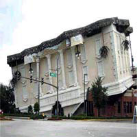 里普利大樓:位于美國(guó)奧蘭多市,建于1998年,在美國(guó)頗有名氣。這棟建筑故意建造成樓身遭遇地震后發(fā)生斷裂的樣子,目的是為紀(jì)念發(fā)生在1812年的一次大地震。