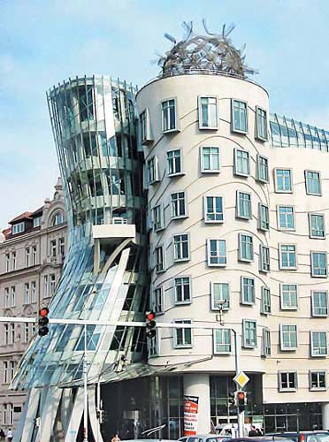 跳舞房子:捷克首都布拉格最受爭(zhēng)議的建筑之一。它建于1992年至1995年,由V·米盧尼奇和F·格里兩位建筑師設(shè)計(jì),扭曲的造型使得這棟房子看起來(lái)像在跳舞。
