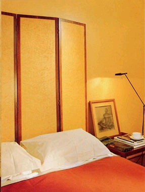 4.把楓木和棕櫚木制成的屏風與臥床放在一起,就成了十分別致的床頭板。這樣的裝飾手段可不是隨便誰都能想出來的。