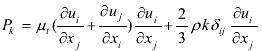 ρ 和 μ 分別為容積分?jǐn)?shù)平均密度和分子粘性系數(shù); μt 為紊流粘性系數(shù),它可由紊動能 k 和紊動能耗散率 ε 求出: