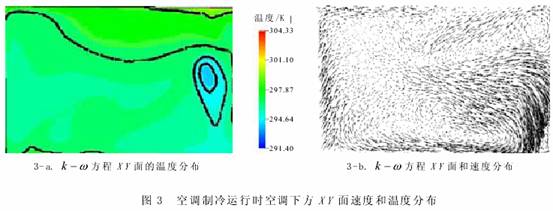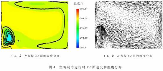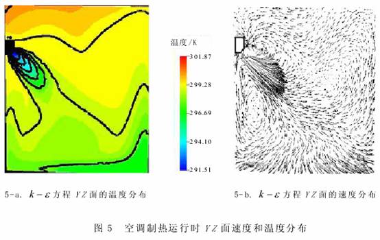 本文利用湍流 k -ε 、 k -ω 方程計算了壁掛式空調(diào)的制冷與制熱運(yùn)行時的三維速度與溫度場,分別比較了制冷與制熱運(yùn)行時 3 個不同坐標(biāo)平面內(nèi)的速度與溫度分布。 空調(diào)的制冷與制熱運(yùn)行的兩個工況,制冷運(yùn)行中出現(xiàn)了冷風(fēng)下墜現(xiàn)象,在制熱運(yùn)行中有部分熱空氣未經(jīng)充分熱交換而直接回流,能量利用不充分,溫度均勻性也不好。 利用 CFD 計算可以改善室內(nèi)的氣流組織,通過改變空調(diào)不同氣流出口速度、不同的出口角度從而得到合理的氣流組織形式,這是采用傳統(tǒng)的射流理論無法做到的。
