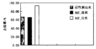 由圖1可知,在TOC的去除效果上,活性炭對TOC有一定的去除效果,但仍有一部分未能去除;納濾NF1對TOC的處理效果較好達(dá)到93.9%;而納濾NF7對TOC的處理效果不夠理想。