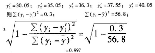 2.進(jìn)行相關(guān)系數(shù)檢驗(yàn)(取D=0.05,R值小數(shù)點(diǎn)后保留3位,相關(guān)系數(shù)臨界值見(jiàn)附表)。
