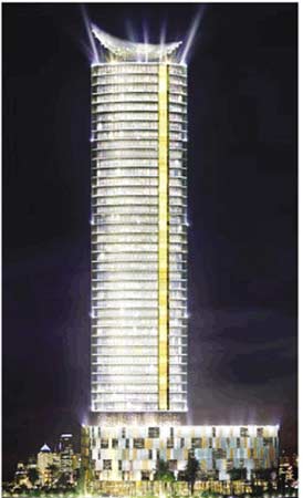 按照設(shè)計,這座30層的大廈共有約200套公寓,包括一居室、兩居室、復(fù)式房和頂層豪華公寓等不同戶型,樓頂還可能建有游泳池和月牙形的“月光休息廳”。它將成為目前正在施工的大型“迪拜園”的中心建筑。目前公寓價格尚未公布,但銷售計劃于2007年3月開始。