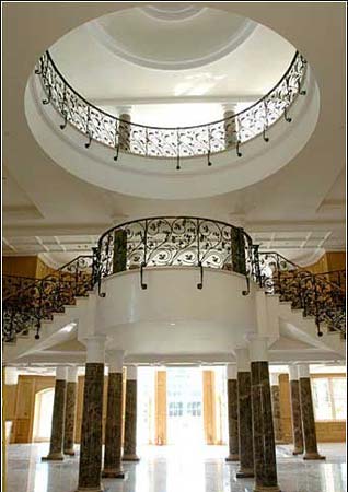 英國一處名為UPDOWN COURT的豪宅,最近以7000萬英鎊(約1.3億美元)要價,被《福布斯》雜志列為全球最貴私人住宅。這座豪宅位于英國倫敦西南郊薩里地區(qū),離倫敦只有20多分鐘車程。它占地58英畝(約350畝),其中有11英畝正規(guī)花園,另有樹林、兩幢賓客副樓,馬廄、網(wǎng)球場、兩個室外泳池、三個室內(nèi)泳池、壁球室、保齡球室、影院、酒窖、直升機坪等,豪宅還應(yīng)用了大量電腦控制技術(shù)。