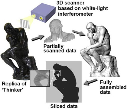 通過這種新方法,科學家對羅丹的不朽杰作《思想者》的復制品進行了掃描,制作出比大約6英尺高的原創(chuàng)作品小9300倍的微型作品。楊東勇及同事將這一發(fā)現發(fā)表在1月4日出版的國際物理學權威雜志《應用物理學文獻》上。