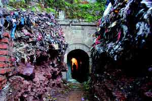 防空洞洞口隱藏在垃圾堆后面,極其隱蔽。