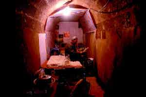 洞口靠里的陰暗處,一臺29英寸的電視機(jī)正放在石板上不停地閃著。在菜園壩建興坡一個(gè)2000平方米的防空洞內(nèi),有人竟然為了在春運(yùn)期間掙取旅客的食宿費(fèi),私自將封閉防空洞的洞口挖開,在里面搭起電源、電燈,再用木板隔出房間開起了所謂的“防空旅館”。