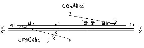 O為大氣壓力線,△P~△P為室內(nèi)正壓線,ab為送風(fēng)管的壓力降, △Hs為送風(fēng)口的壓降,△Hh為回風(fēng)口的壓降。Cd 為回風(fēng)管壓降,de為空調(diào)箱壓降。 d點(diǎn)處于負(fù)壓狀態(tài),由于負(fù)壓值O‘d的存在,大氣被吸入混合箱內(nèi)。