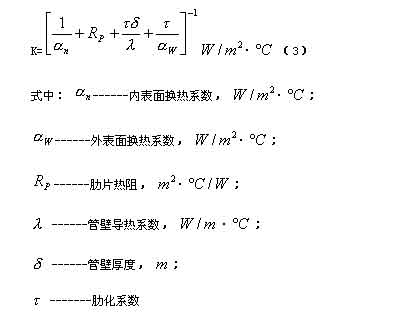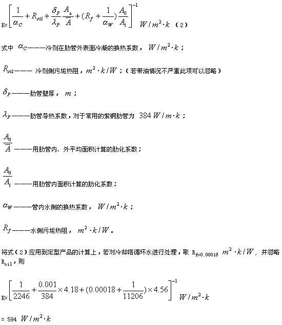 對(duì)于臥式肋管冷凝器,若以外表面為基準(zhǔn)的水冷式冷凝器,其傳熱能力的計(jì)算應(yīng)用下式: