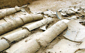 ③阿房宮遺址上,鋪設(shè)的板瓦飾有細(xì)繩紋。