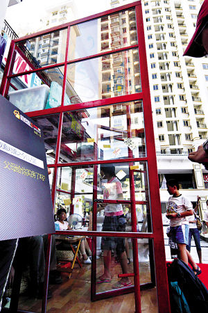 今年7月,呂國華在當(dāng)?shù)匾痪W(wǎng)絡(luò)社區(qū)發(fā)帖提出建樓中樓的設(shè)想。當(dāng)?shù)匾患屹徫镏行牡弥藚螄A的這個創(chuàng)意,免費(fèi)為他提供了一塊小空地。呂國華的房子是鋼架結(jié)構(gòu)的,長2.5米、寬2米、挑高3.6米,墻是用鋼化玻璃打造而成。房子里用鋼板隔成“樓中樓”,一根3.6米的鋼管成了呂國華上下樓的“樓梯”。樓上的空間用來當(dāng)臥室,用一張長2米、寬1.5米的草席當(dāng)床,床的后面用幾個儲物箱搭成簡易的衣柜,儲物箱的面板就是他的電腦桌。樓下的空間設(shè)計(jì)成客廳、廚房、衛(wèi)生間。衛(wèi)生間只留了一個馬桶和洗手池的位置。呂國華說,從9月30日晚入住到現(xiàn)在,他的家接待了上萬人參觀。他自稱為“MR.5”—5平方米先生,展示只有5平方米的壓縮生活。