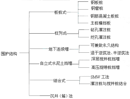 答:基坑支護結構在我國應用較多的有鋼板樁、預制鋼筋混凝土樁、鉆孔灌注樁、挖孔樁、深層攪拌樁、旋噴樁、地下連續(xù)墻、鋼筋混凝土支撐、型鋼支撐、土層錨桿以及諸如逆筑法、沉井等特種基坑支護新工藝、新方法。