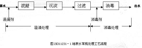 以地表水作水源的水廠多采用圖2K311231-1所示的工藝流程。