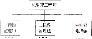 標(biāo)段設(shè)立三個(gè)監(jiān)理分支部分。此圖若在第一層與第二層之間設(shè)“總監(jiān)辦公室”,則只得一半分。)