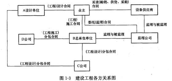 2.建設(shè)工程各方關(guān)系如圖1-8所示。
