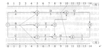 解題要點(diǎn):A項(xiàng):B工作第五周末檢查時(shí)尚有總時(shí)差為:(LFB-5)-1=-1,所以影響工期1周;B項(xiàng):C工作是關(guān)鍵工作IC項(xiàng):工作C、E、H為前后的關(guān)鍵工作;D項(xiàng):由于C關(guān)鍵工作偏差拖后一周,緊后工作D將在第7周末開始;E項(xiàng):工作H正常,工作D落后1周小于總時(shí)差2,不會(huì)影響工期。