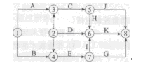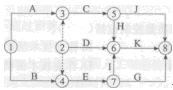 解題要點(diǎn):①多余虛工作2—3,2—4;②兩個(gè)起點(diǎn)節(jié)點(diǎn)①、②;③節(jié)點(diǎn)編號(hào)存在箭頭節(jié)點(diǎn)小于箭頭節(jié)點(diǎn)編號(hào)⑦一⑥。