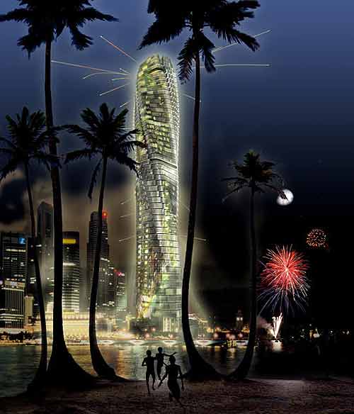 據(jù)稱,旋轉(zhuǎn)摩天大樓倡導(dǎo)綠色環(huán)保觀念,所用電能都是風(fēng)力渦輪發(fā)電,此外,部分摩天大樓設(shè)計圖還在大樓上建造公園,種植許多植物。