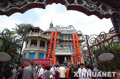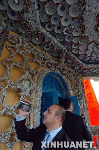 當(dāng)日,經(jīng)過歷時5年的精心打扮,天津一座用古瓷片裝飾的“瓷房子”正式對外開放。天津收藏家張連志從2002年開始,先后用去4億多片古瓷片、5000多個古瓷瓶和4000多個古瓷盤碗,對一座法式小樓進(jìn)行裝飾改造,吸引了不少市民和觀眾的目光。新華社記者王曄彪攝