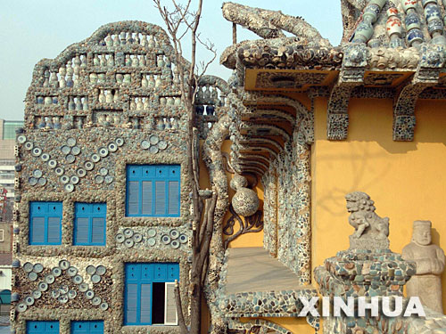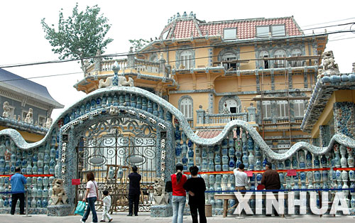 資料圖:2006年5月3日拍攝的用瓷瓶裝飾的“瓷房子”圍墻。新華社發(fā)(蘇振強(qiáng)攝)
